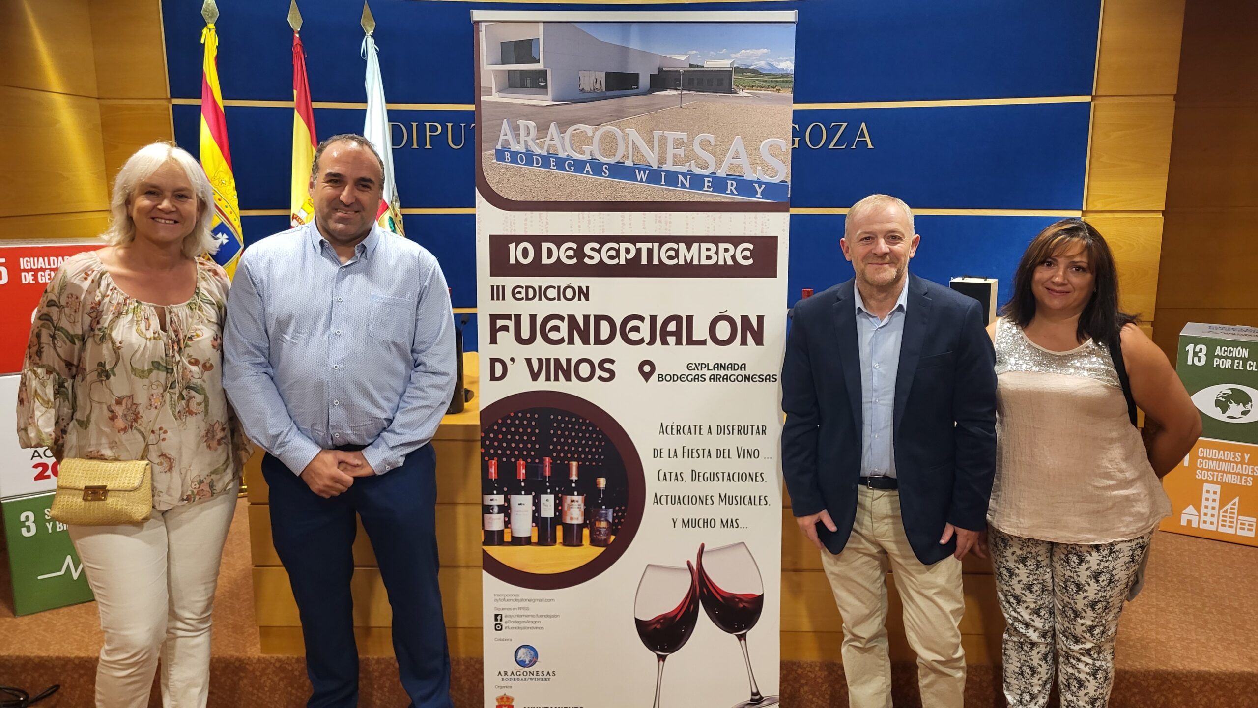 El Ayuntamiento de Fuendejalón y Bodegas Aragonesas organizan la tercera edición de la feria Fuendejalón D’Vinos, cuyo objetivo es “dinamizar, dar a conocer y promover este municipio, sus vinos y su cultura vitivinícola, cuya principal variedad de uva es la garnacha tinta, aunque se han ido plantando nuevas viñas de tempranillo, cabernet, merlot y syrah”.