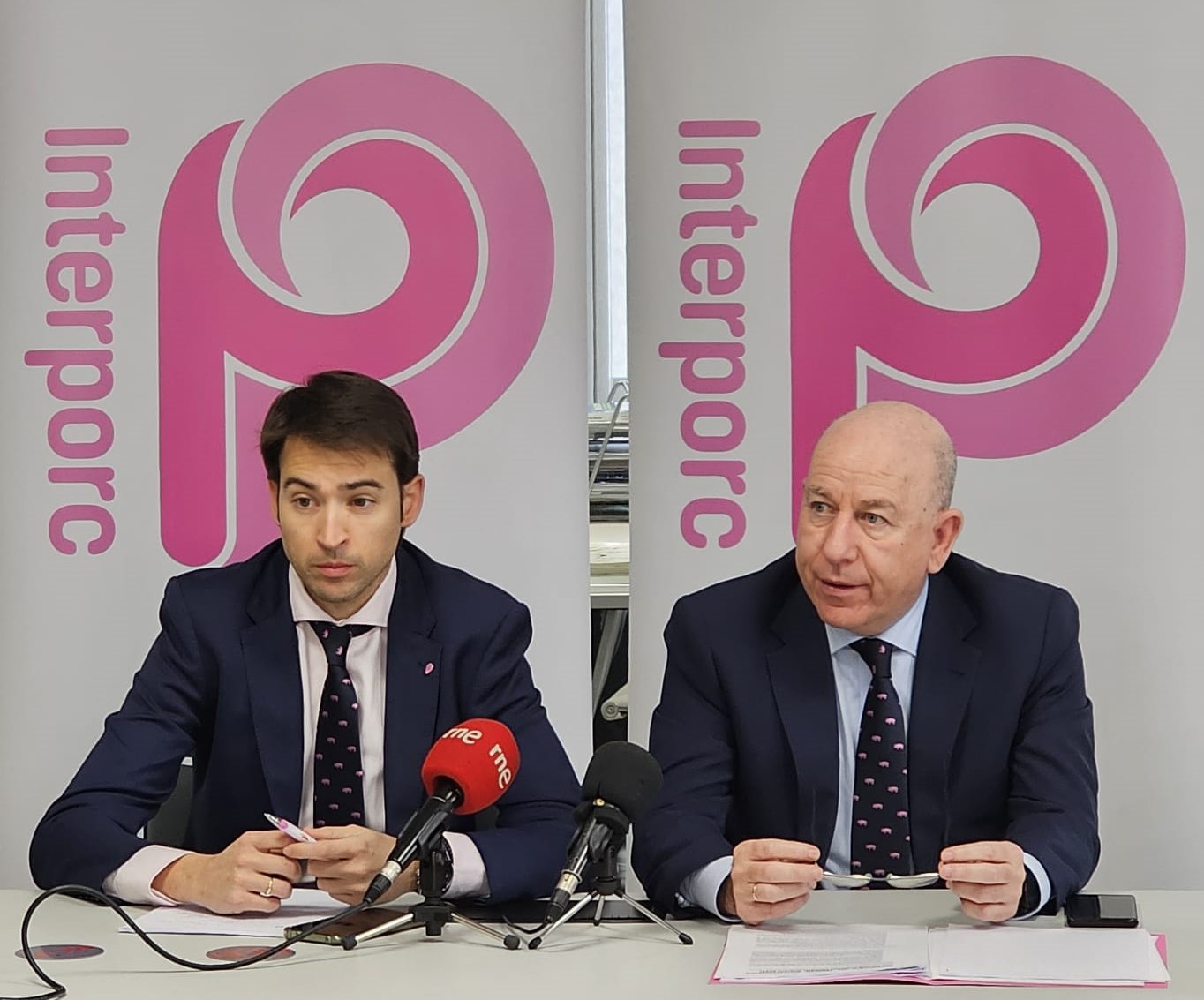 Es uno de los datos más destacados del balance de 2023 realizado por la Interprofesional del Porcino de Capa Blanca (INTERPORC). Han comparecido en rueda de prensa dos de sus responsables: Alberto Herranz y Daniel de Miguel. El porcino español vendió en el extranjero 2,8 millones de toneladas de carne y productos porcinos, con un valor situado en nueve mil treinta millones de euros. Bajó un cuatro por ciento el volumen exportado pero el valor subió un nueve por ciento. INTERPORC señala que “el porcino se mantiene como el sector con el saldo comercial más importante del sistema agroalimentario y se afianza en su condición de ser un sector estratégico para la economía española”. El censo ganadero porcino se situó en 2023 en algo más de treinta millones de animales, lo que supone un ligero descenso respecto al año anterior. También cayó la producción de carne, situándose en casi 4,9 millones de toneladas.