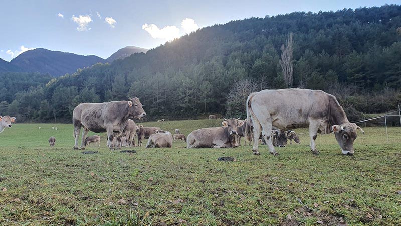 En la explotación de Pablo Compairé, la ganadería extensiva se presenta como uno de los modelos más representativos del territorio. Un total de setenta vacas de raza parda se crían en libertad, alimentándose de pastos naturales y bajo un sistema respetuoso con el entorno.
